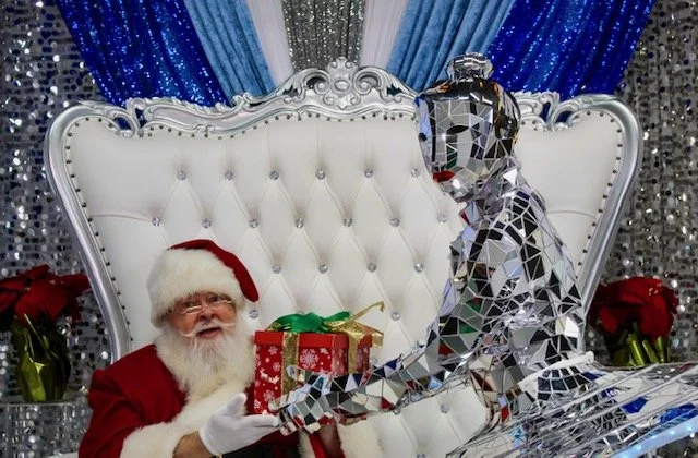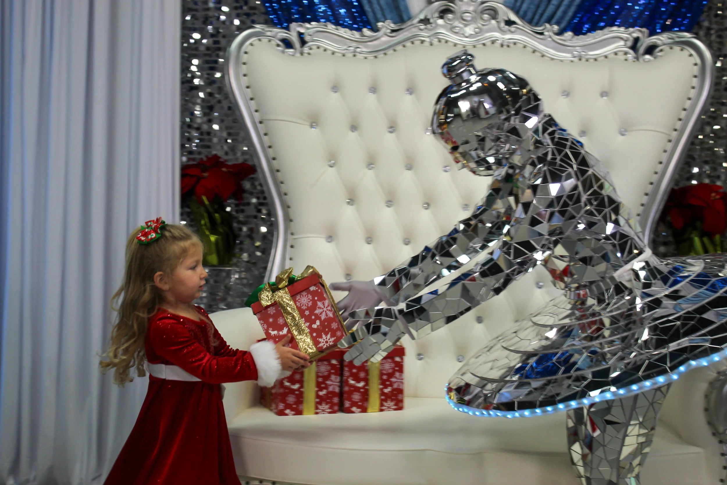 Introducing the Dazzling “Miss Mirror Ballerina”. From head to toe, she is covered in brilliant mirrors that sparkle and shine with every move. Her glowing skirt catches the light, creating a breathtaking show as beams of color dance across the room.